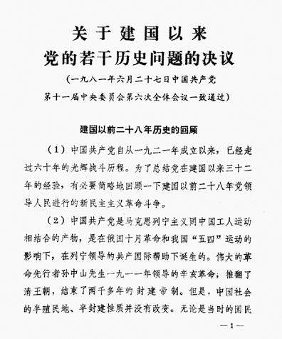 6月27日,《决议》终于在党的十一届六中全会上一致通过。《决议》共有8个部分,即建国以前28年历史的回顾;建国32年历史的基本估计;基本完成社会主义改造的7年;开始全面建设社会主义的10年;“文化大革命”的10年;历史的伟大转折;毛泽东同志的历史地位和毛泽东思想;团结起来,为建设社会主义现代化强国而奋斗。由中共中央党史和文献研究院编写的《中国共产党的一百年》写道:《决议》“既对多年来的‘左’倾错误和毛泽东晚年的错误作了科学分析和深刻批评,又坚决维护了党在长期斗争中形成的优良传统,维护了毛泽东的历史地位和毛泽东思想的科学体系,从而分清了是非,纠正了当时存在的‘左’和右的错误观点,统一了全党全国人民的思想,为维护全党的团结和全国人民的团结,为社会主义建设事业的健康发展,提供了根本保证。《决议》总结新中国成立以来正反两方面经验,总结改革开放和社会主义现代化建设的新鲜经验,对党的十一届三中全会开创新道路的主要点所作的初步概括,为党和国家事业发展指明了方向。在‘文化大革命’结束后不长的时间内,就能产生这个《决议》,正确解决了既科学评价毛泽东的历史地位和毛泽东思想的科学体系、又根据新的实际和发展要求确立中国社会主义现代化建设正确道路这样两个互相联系的重大历史课题,充分体现了党中央的远见卓识和政治上的成熟。《决议》对推动党团结一致向前看、更好推进改革开放和社会主义现代化建设产生了重大影响。”“党制定《决议》,标志着党在指导思想上的拨乱反正胜利完成。”
