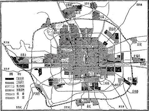 规划提出“旧城逐步改建,近郊调整配套,远郊积极发展”的建设方针,合理调整城市布局。对旧城逐步改建、近郊调整配套以及在远郊地区有计划发展卫星城和村镇建设提出明确要求,形成大、中、小相结合的城镇体系。旧城主要体现政治中心和文化中心的需要;近郊工业区进行搬迁调整,建设居住区和各类生活服务设施;远郊因地制宜、有计划地发展卫星城镇,首次提出建设要“搞好环境评价”。对山区建设与保护提出要求,保持水土,发展生产,体现城乡协调发展的内涵要求。