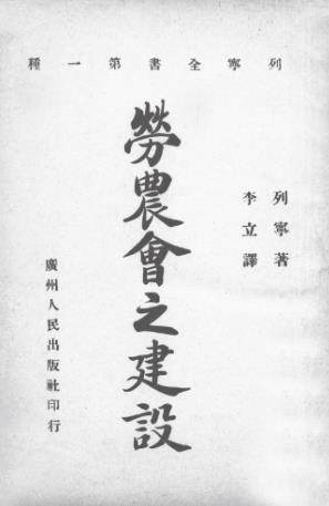 1.《劳农会之建设》(今译《苏维埃政权的当前任务》)。著作最早以《苏维埃政府的要图》(即《苏维埃实现》)为名刊登在《列宁的著作一览表》中,仅作宣传,并未出版。《劳农会之建设》最早由金侣琴节译,发表在《解放与改造》第2卷第6号,命名为《建设中的苏维埃》。译者开宗明义道:“(列宁)发布了好多小册子,解释俄国问题的意义及波尔雪佛克派的要求和建设。内中有一本叫《建设中的苏维埃》(The Soviet at Work)我现在所要介绍的,就是这一本。”次年12月《劳农会之建设》作为“列宁全书”第一种由人民出版社出版。