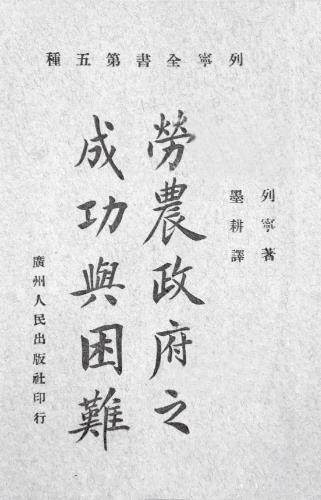 5.《劳农政府之成功与困难》(今译《苏维埃政权的成功与困难》)。其初版作为“列宁全书”第五种于1922年2月由人民出版社出版。著作末尾,译者李墨耕专门写道:“此书系一九一九年三月十三号列宁在彼得格勒一个集会上作的讲演。”