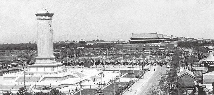 天安门广场是封建王朝衰落、中华民族复兴的见证地。天安门城楼是中国古代最壮丽的城楼之一,并以其杰出的建筑艺术和特殊的政治地位为世人所瞩目。明清两代,皇帝在此举行重大活动。皇帝登基、册立皇后和皇太子等需要在天安门城楼上举行颁诏仪式,称为“金凤颁诏”。1900年8月,八国联军侵华,天安门城楼遭到炮击。1912年2月12日,这里颁布了清帝的退位诏书,标志着清王朝的灭亡,宣告在中国延续了2000多年的封建君主专制制度结束。37年后,为迎接中华人民共和国诞生,天安门城楼焕然一新。城楼红墙中央悬挂毛泽东画像,城楼两侧有两条巨幅标语,一条是“中华人民共和国万岁”,一条是“中央人民政府万岁”。1950年国庆时,城楼东侧“中央人民政府万岁”改为“世界人民大团结万岁”。后来天安门城楼历经重建和修缮,于1988年1月1日正式向国内外游客开放。这正是中国不断崛起、自信开放的一个缩影。