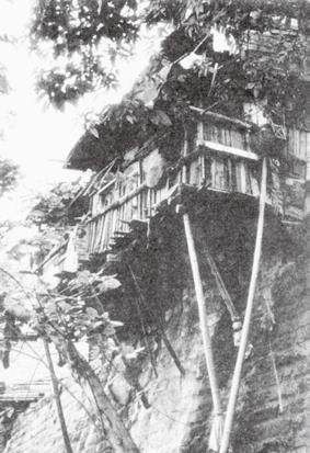 重庆雨多,大轰炸之后往往会下大雨,那真是“屋漏偏逢连夜雨”。我们家所在的三楼首当其冲,屋顶屡遭弹片击中,大洞小洞千疮百孔,根本无法修补,也没法住人了。但凡下雨,三楼下大雨,二楼下中雨,一楼下小雨。雨天时,我们家总在地上摆着盆盆罐罐接雨水,被褥衣物全湿透了。夜里躲在床上靠墙的角落,父亲一手撑着油纸伞,一手抱着母亲,母亲怀里抱着我,迷迷糊糊、半睡半醒等天亮,经常如此。
