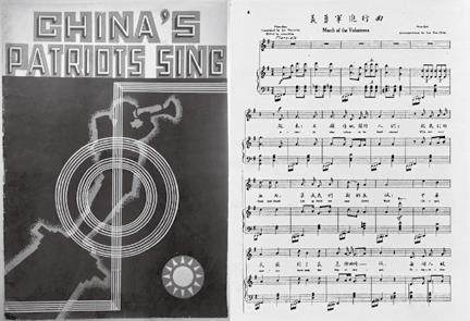 1939年,国民党中央宣传部国际宣传处将《义勇军进行曲》等抗战歌曲翻译成英文,收入李抱忱编选的《中国抗战歌曲集》,先在香港和印度加尔各答出版,英文名China’s Patriots Sing;后在纽约再版,更名Songs of Fighting China。李抱忱为《义勇军进行曲》编配了钢琴伴奏,还在《纽约时报》撰写通讯《抗战歌曲传唱大江南北》,阐释《义勇军进行曲》中西合璧的作曲技法与艺术特色: