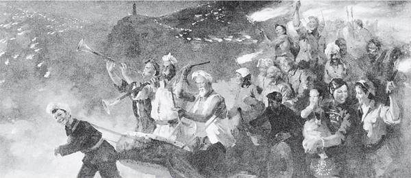 在火炬游行的人流中,还走着一支日本工农学校的队伍。他们过去大多是侵华日军中的士兵,被俘后经过教育参加了反战运动而被送到延安学习。他们同中国抗日军民一起振臂高呼口号,并兴奋地议论着战后回国的话题。这一天,驻延安的美军观察组以自己独特的方式表达兴奋的心情。他们最先得到日本发表无条件投降诏书的消息,先是激动地端起冲锋枪朝天发出一连串的点射,接着又驾驶汽车加入了火炬游行的队伍之中。这天晚上,延安城的灯火彻夜通明,庆祝活动通宵达旦。朱德总司令在王家坪八路军总部举行鸡尾酒晚会,邀请留在延安的盟国友人,一起庆祝反对日本法西斯战争的胜利。