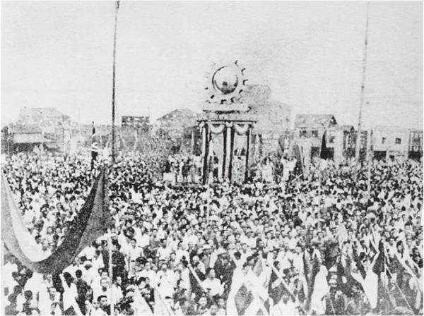 8月15日,是延安、重庆、南京、台湾人民欢庆的日子,也是所有中国人普天同庆的日子。历经屈辱与抗争的北平沸腾了,天安门前竖起了大型标语木牌:“还我河山”,大街小巷张灯结彩,鞭炮、锣鼓、横幅、标语,人民痛快淋漓地宣泄着、庆祝Eg5PkuguNMYr2ON1XD5vfWswOiCMyzQp9nSNDSn/C/w=着。10月10日,北平受降典礼在故宫太和殿前隆重举行。20多万民众聚集在紫禁城和四周,争相见证这一历史时刻。这一天,上海市民涌上街头庆贺胜利,南京路等繁华地段挂上国旗,外滩有大量人群聚集燃放鞭炮。寓居上海的梅兰芳,当初因拒绝为日本侵略者演出而蓄须。当抗战胜利的消息传来时,他当即剃去胡须,高兴地宣布:“胜利了!我要登台演出了。”人们以各种方式,热烈地表达对祖国抗战胜利的庆祝、喜悦和自豪。