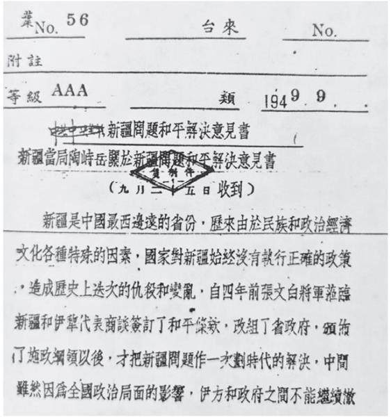 为防范国内外敌对势力染指新疆,并紧密联络三区革命力量及国民党内部进步势力,1949年8月,中共中央果断决策,派遣当时正在莫斯科的刘少奇代表团政治秘书邓力群,以中共中央联络员身份,从莫斯科直赴伊宁。邓力群迅速建立“力群电台”,架起与中共中央直接沟通的桥梁。从8月17日开始,他先后会晤三区革命领导人阿合买提江·哈斯木、伊斯哈克伯克·穆努诺夫、阿不都克里木·阿巴索夫。8月18日,“力群电台”收到毛泽东邀请三区代表参加新政协的正式信函。8月19日会谈时,邓力群转交了邀请信,阿合买提江·哈斯木代表三区欣然接受邀请,并向中共中央和毛泽东致以崇高敬意与诚挚感谢。9月15日,肩负重要使命的邓力群抵达迪化,与陶峙岳、包尔汉会面,传达中共中央的明确指示和张治中将军致两人的亲笔信。他广泛接触迪化各界进步力量,成功将新疆各方爱国进步势力凝聚在中共中央的旗帜之下。