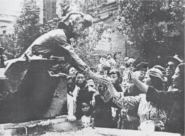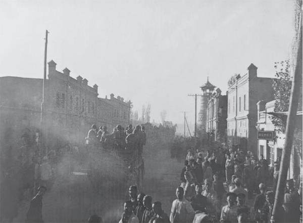 在战车第五团团长胡鉴率领下,第二军先头部队于10月20日抵达迪化,包尔汉驱车16公里至芨芨槽子迎接。当部队到达时,包尔汉上前与胡鉴热烈握手、拥抱,一起向市区开进。道路两旁的欢迎群众挥舞着五星红旗,高呼着“毛主席万岁”“人民解放军万岁”的口号,向解放军致敬。沿途各族青少年争相爬上战车和战士们亲切握手,并竖起大拇指说:“我们的军队。”有一个维吾尔族同胞感动地对战士们说:“维吾尔族今天和其他国内民族一同翻身了。你们是各民族的军队。我们都一致拥护你们。”装甲车营随即接管迪化城防,维持秩序,控制机场,为空运后续部队做准备。