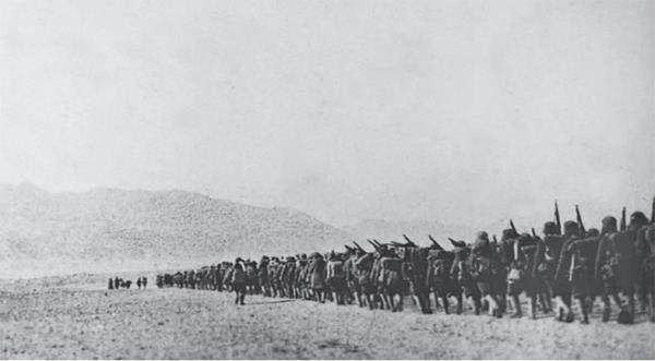 深秋十月,西北严寒刺骨,行至祁连山口,王震司令员目睹行进于风雪中的浩荡西进部队,感怀于其磅礴气势,赋诗曰:“白雪罩祁连,乌云盖山巅。草原秋风狂,凯歌进新疆!”随行指战员都被司令员的万丈豪情所激励,齐声振臂高呼:凯歌进新疆!极大地鼓舞了部队士气。