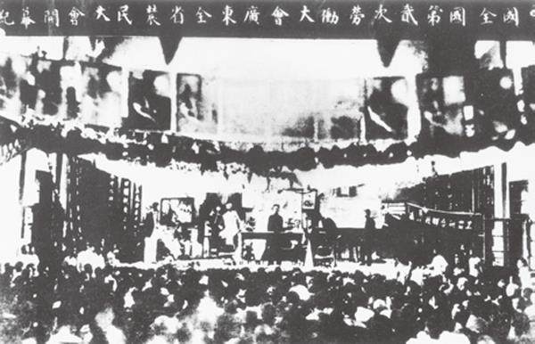 第二天,二次劳大与广东农民代表大会共同在广东大学大礼堂举行正式的会议开幕式。参加会议的有两会代表近400人,二次劳大出席代表277人,代表全国166个工团的54万工会会员;农民协会代表112人,代表广东省22个县21万有组织的农民。此外,还有青年军人联合会代表、赤色职工国际代表、国民党代表、广东省政府代表及各界人士,共千余人参加开幕式。会议推刘少奇、苏兆征、邓少山为劳动大会主席,邓贯香、廖仲恺为农民协会主席,王一飞为青年军人联合会主席。各位主席就座后,全场呼口号,唱《国际歌》,并为在近年来工农运动中的死难先烈与孙中山先生默哀五分钟。会议主席在讲话中剀切说明召开这次大会的重要意义,指出:“在这次大会里,第一要统一全国工人组织及普遍全国农民组织;第二要促成工农紧密的联合;第三要联合革命的军人及一切被压迫的民众;第四要联合全世界的无产阶级。”这几条大会宗旨条条都贯彻了中共四大提出的基本原则。在这高涨的气氛中,中共中央工农部部长张国焘进一步具体阐述“工农联合的意义”。几天后,会议通过《工农联合的决议案》,强调:“中国农民占全国人口总数75%,他们所受的压迫和剥削,较工人尤甚。中国工人阶级要想得到解放,更非联合农民共同奋斗不可。”同样,“农民要得到自身的解放,也只有与工人联络,才有可能。”《决议案》还提出工农联合的具体措施,要求“工人在其回乡时,或在其工作附近地之农村,均应向农民宣传并帮助他们组织农民协会”,“工会农会之间,得互派代表;工会应设法提携农会进行。并助其发展经济的组织”,“工会应领导工人为实力的援助”。邓中夏曾指出:“‘工农联合’这一口号,自从第二次全国劳动大会以后,已经及于全体工友,个个都认为是我们解放路程上所这必要采的策略了。”
