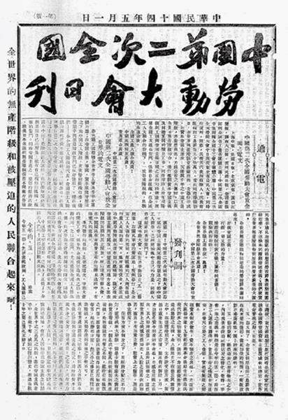 4月5日和8日,这四个发起单位首先在上海《申报》《民国日报》刊登《发起第二次全国劳动大会紧急启事》。《启事》称:“全国各工团公鉴:我工人阶级为谋全国大团结起见,曾于一九二二年五月一日在广州开过第一次全国劳动大会,并由大会委托中国劳动组合书记部于次年召集第二次大会。嗣因二七惨变后,全国工团皆在严重压迫之下,第二次大会竟不能召集,各处工团无不引为遗恨。敝会等以中国各工团应急本阶级互助精神,谋全国一致之团结,特发起于本年五月一日在广州召集中国第二次全国劳动大会,业由敝会等已各派代表一人在广州设立筹备处,望全国各工团派遣正式代表出席。”这个《启事》正式开启了二次劳大的筹备工作。