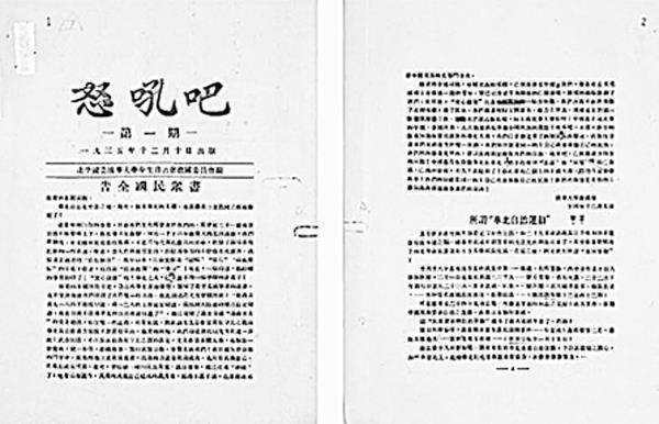 这期的《怒吼吧》,同时登出华云的《所谓“华北自治运动”》和直心的《请加入全国总动员的抗敌—敬向华北当局进一言》两篇文章。该刊仅出1期,原件藏清华大学档案馆。