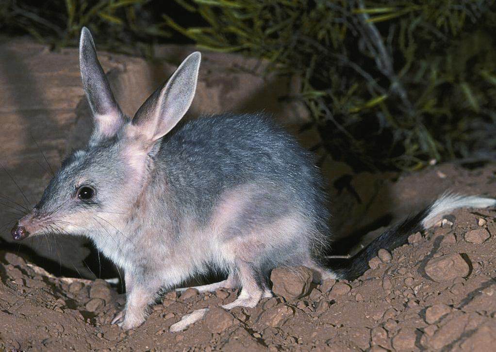 兔耳袋狸是兔耳袋狸科兔耳袋狸属的肉食性有袋类,体长40~56厘米,长着一对大大的“兔子耳朵”。不过,它的尾巴比兔子的长很多,最长可超过30厘米。兔耳袋狸的眼睛小而圆,吻部较尖,端部毛色为粉红色,侧面生有短的灰白色胡须;体毛主要为暗灰色,腹面较浅,四肢为白色;腹部和袋鼠一样生有育儿袋,不过袋口是朝后开的(袋鼠的育儿袋是朝前开的)。