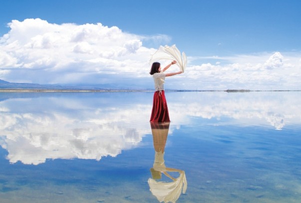 茶卡镇,在青海省乌兰县,得名于有中国“天空之境”美称的茶卡盐湖。茶卡盐湖是柴达木盆地中有名的天然结晶盐湖。这里的食盐颗粒大、质地纯,是理想的食用盐。因盐晶体中含有矿物质,使盐粒呈微微的青黑色,故称“青盐”。2009年,茶卡盐湖出产的盐被批准为国家地理标志保护产品。