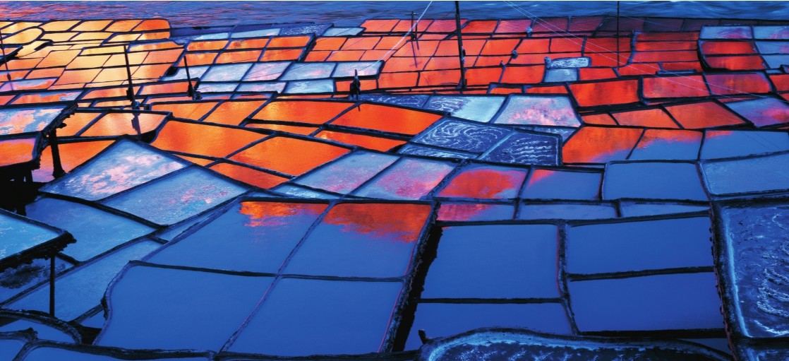 运城市在山西省西南部、黄河东侧,古称“河东”,是中国最古老的盐业生产中心。当地自古盛产湖盐,宋、元时期置盐运使,在此地设运司衙门,开始称运城。运城境内的著名盐湖解池也被称为河东盐池,总面积达132平方千米,出产大量优质食盐,成为财富汇聚的源泉。人类的第一场战争就是为了争夺河东盐池而爆发的“黄帝战蚩尤”。这里产生的古老的“五步产盐法”生产工艺距今有1300多年历史,比欧洲晒盐术早了1000多年。2014年,这项生产工艺被列入国家级非物质文化遗产目录。解池也被称为“七彩盐湖”,它就像大地的调色盘,五颜六色,丰富多彩;其中,最为显眼的就是粉红色的“玫瑰湖”。盐湖的水之所以会变红,是因为湖中生长着一种单细胞植物杜氏盐藻。杜氏盐藻中含有β胡萝卜素,所以它的细胞壁表面呈暗红色。夏季,由于气温升高,湖水蒸发量加大,水中的盐藻含量增加,通过阳光的反射,整个湖面呈现红色,所以我们在夏季能够看到“玫瑰湖”奇观。解池里还富含有益人体的矿物质黑泥,它是人体美肌活肤的保健品。若你有机会去解池,一定要试试用原生态的黑泥涂满全身,做一次全身护肤。