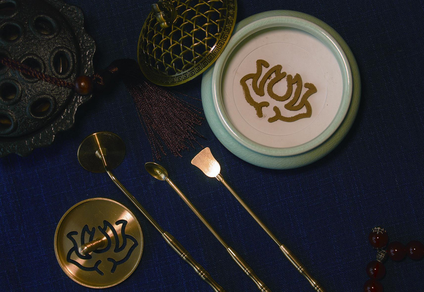 其实,用香计时最早用的不是线香,而是篆香,也叫香篆、印香。篆香是指将香材研磨成粉,填充在各种以篆文为花样的香范里,做成带有图案和文字的香品。