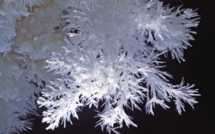 雷修古拉洞穴这一“后起之秀”仿佛就是为震惊全球而生。就在洞口,它便创造了一个世界纪录:已知洞穴洞口最高的气体交换率。而洞中的沉积物更是让洞穴专家大跌眼镜。在一处名为“吊灯舞厅”的洞厅中,无数洁白的石膏晶体从洞顶霹雳般分枝而下,最长的超过6米,质地晶莹,如霜似雪,仿佛被时间凝固的闪电,这是全球目前已知的最大枝状石膏沉积物。和卡尔斯巴德洞穴相比,雷修古拉洞穴更深入地下,很多地下水汇聚于此,因此不乏蓝宝石般的洞中湖泊。在水中生长的石枝在全球也仅见于此,出版于1991年3月的美国《国家地理》杂志将其誉为“超乎想象”。除了此般壮观者,洞中也不乏精妙的结构。一些发丝般的石膏沉积物长达数米,将手放在旁边,它们都会因手散发的热量而摆动,足见其纤细程度。值得一提的是,雷修古拉洞穴中的单质硫含量估计超过1000吨,比全球其他溶洞中的单质硫总和还多,这是硫酸侵蚀成洞这一特殊过程遗留的印记。