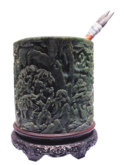 早在先秦时期,我国著名的地理著作《山海经》中就有关于碧玉的记载:“又北二百里,曰维龙之山,其上有碧玉,其阳有金,其阴有铁。”明代地理学家、旅行家和文学家徐霞客在游云南时也曾见到碧玉,并在《徐霞客游记》一书中多次提及。此外,《旧五代史》中有“碧玉金镀银裹鞍辔”、《元史》中有“碧玉宝枕”的记载。碧玉不仅被记录在正史中,在很多古典小说中也曾多次出现。在《红楼梦》中,贾探春曾送给邢岫烟一枚碧玉佩;《水浒传》中,双鞭呼延灼“系一条攒八宝,嵌七珍,金雀舌,双獭尾,玲珑碧玉带”;《封神演义》中,商纣王“身穿赭黄衮服,头戴冕旒,手拱碧玉圭”……然而,这些文字记载都极为精练,对碧玉本身的描述非常笼统,我们仅能通过文字想象碧玉的模样,却难以了解它究竟属于哪种玉石,质地怎样,价值几何。