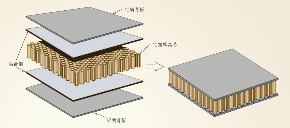 原来,铝蜂窝结构材料的核心为铝箔蜂窝结构,其中六边形孔洞占据大部分空间。如果制作蜂窝芯的铝箔厚度为0.1毫米的话,那么实心部分仅占总体积的百分之几。由于上下背板把蜂窝芯的六角柱形空间封闭得非常严实,因此铝蜂窝结构内的空气就流通不起来了。空气被困,热量就难以传递,自然声波的传播也会受到很大限制。这样一来,铝蜂窝结构材料无疑就具备了不错的隔热和隔音性能。