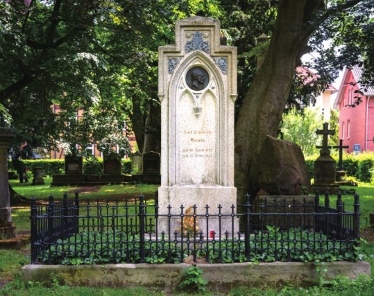 高斯去世后,哥廷根大学为之建造的墓碑上(图16)并没有什么正十七边形的图案,不过,这并不影响高斯的伟大和非凡。有德国慕尼黑博物馆中的纪念文字为证:“他的思想深入数学、空间、大自然的奥秘,他测量了星星的路径、地球的形状和自然力,他推动了数学的进展,直到下个世纪。”