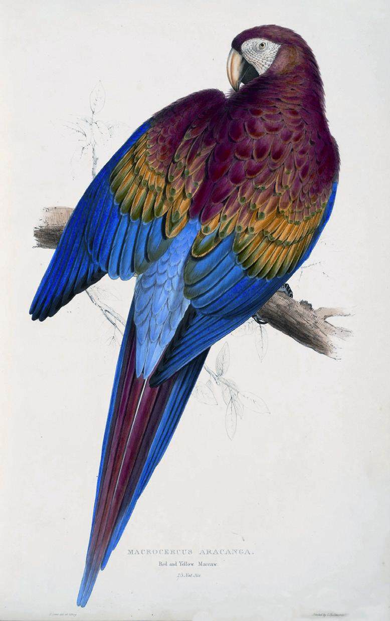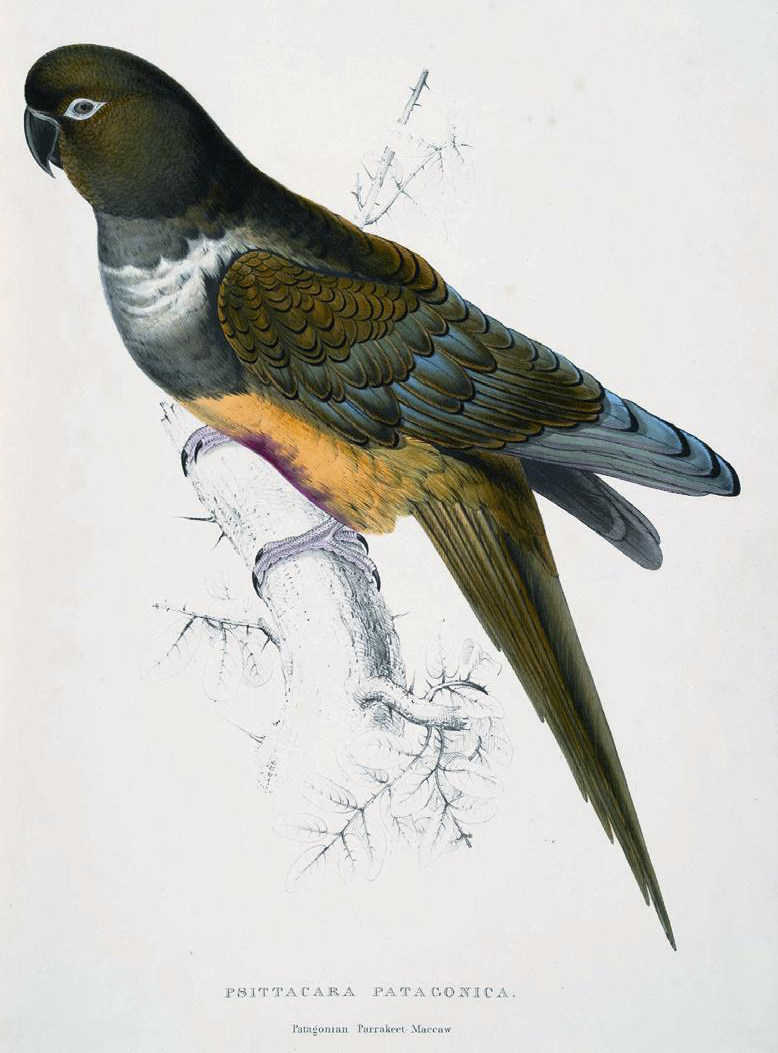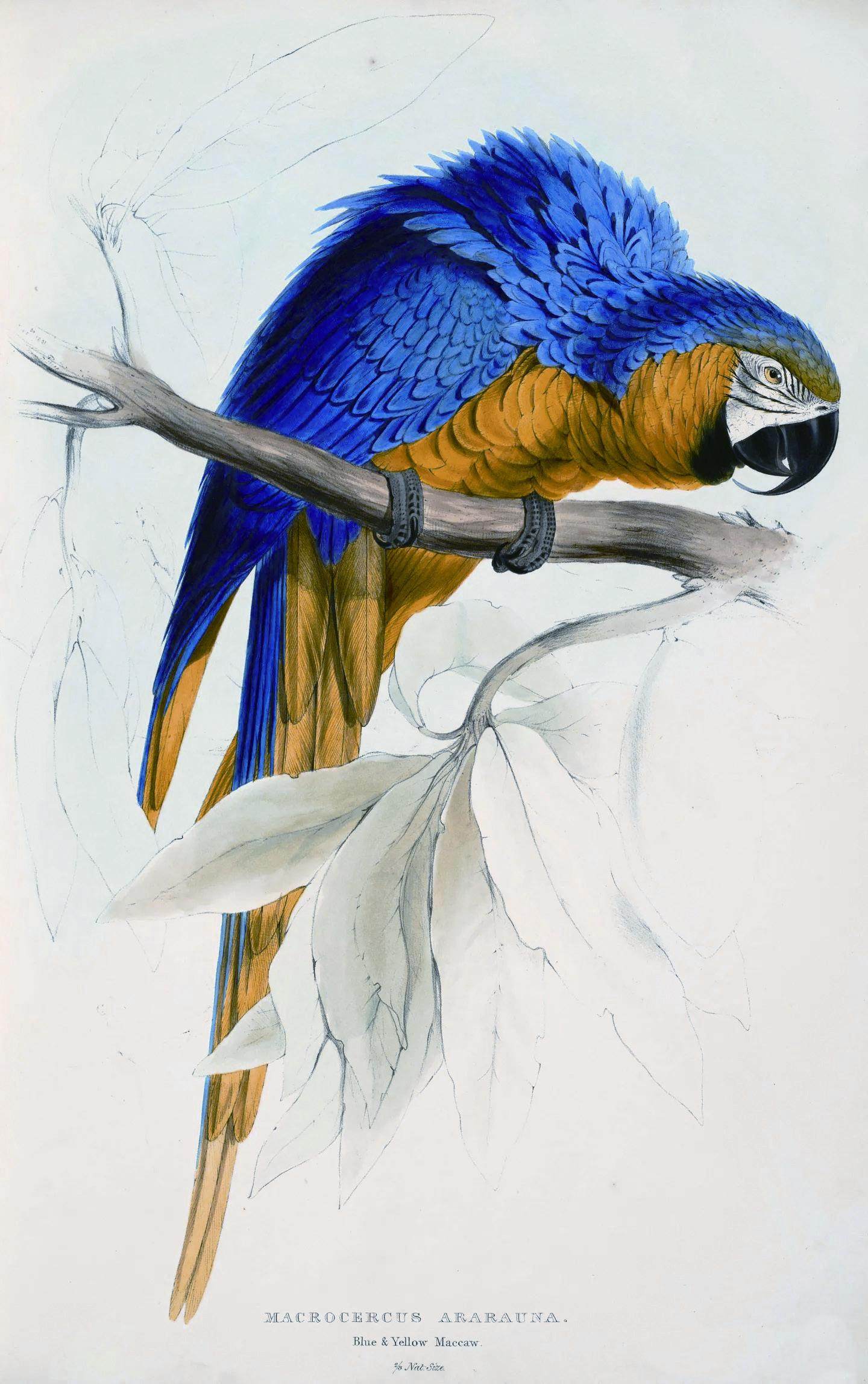 物以稀为贵,来自美洲的鹦鹉前往欧洲、亚洲的旅行一直延续到19世纪。英国学者大卫·阿布拉菲亚在《伟大的海—地中海人类史》中记录:“公元1800年,一艘体积硕大的美国运兵船‘乔治·华盛顿’号抵达阿尔及尔港。这艘开往君士坦丁堡的船上不仅仅有牛、马和一百五十只羊,还有四只狮子、四只老虎、四只羚羊和十二只鹦鹉,还带了一百名黑奴作为年贡献给奥斯曼苏丹。”1832年,英国画家爱德华·利尔出版了《鹦鹉图像》彩画册。在画册中,爱德华·利尔用极其细腻的笔触画出了来自新世界的42种鹦鹉,系统性向欧洲人展示了这些来自新世界的可爱禽鸟。