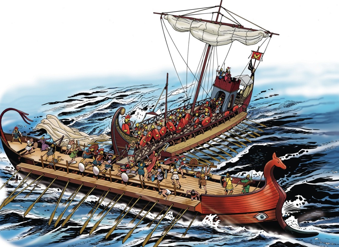 第一次布匿战争(公元前264—前241年)的导火索是“墨西拿事件”。公元前734年,希腊城邦科林斯在西西里岛建立了一个名叫叙拉古的城邦(公元前212年并入罗马版图)。公元前5世纪,叙拉古多次战胜迦太基,称雄西西里岛东部地区。公元前289年,叙拉古雇佣兵中的意大利人突然占领了西西里岛东北的城邦墨西拿。公元前265年,叙拉古出兵包围了墨西拿。占领墨西拿的雇佣兵同时向罗马和迦太基求援。迦太基率先出兵,击败了叙拉古的军队并控制了墨西拿。此后,罗马担心迦太基有可能独霸西西里岛,便于公元前264年出兵,在墨西拿击败了迦太基军队。随着战事的推进,双方互有胜负。公元前256年,罗马派遣远征军,试图消灭迦太基,但是战败而归。直至公元前241年,罗马在一次海战中取得了决定性的胜利,迦太基损失了120艘战船和大量补给物资,上万名迦太基人被俘。迦太基被迫谈判求和,第一次布匿战争就此结束。