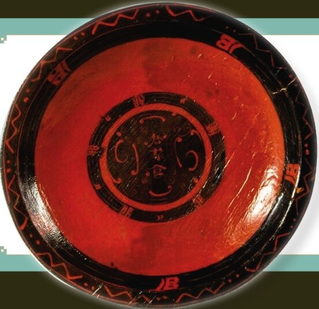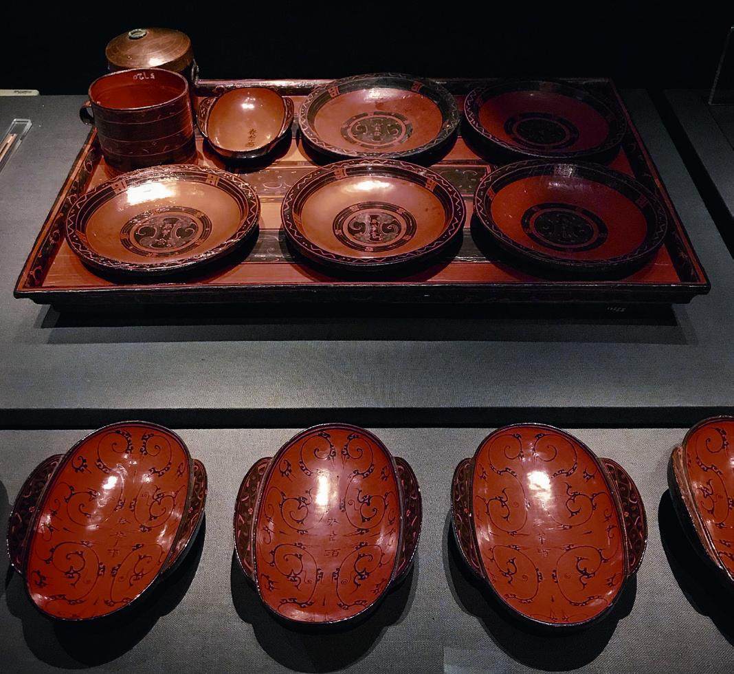 1972—1974年,考古工作者在湖南长沙马王堆乡发掘了三座汉墓。经考证,这是西汉轪侯家族墓地。墓葬中的随葬品丰富,共出土3000余件文物,有制作精美的漆器、薄如蝉翼的素纱襌衣、纹饰繁缛的汉代棺椁、结构复杂的黄肠题凑及一具保存完好的汉代古尸等。在一号墓和三号墓出土的漆器中,有一批罕见的带有狸猫纹的漆盘。据统计,这批漆盘近30件,形制相同,纹饰相似,均为盛食器,宽沿敞口平底,腹部呈浅弧形,口径为28.5厘米左右,高6厘米左右;通体髹黑漆,盘内外有文字,盘内为“君幸食”,盘外底为“九升”“轪侯家”等。盘外绘有云气纹,盘内绘有卷云气纹、狸猫纹、龟纹等,线条简练,类似于近代的写生。
