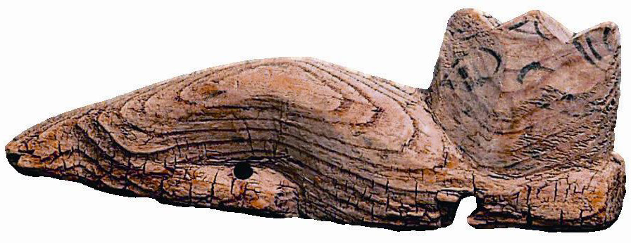 在这些漆盘中,有一个绘有两猫一龟、周围装饰有红色和灰绿色云气纹的漆盘最为引人注目。画面整体呈同心圆的形态向外扩展,构图对称。狸猫用红漆单线勾勒,内涂灰绿色漆,朱绘耳、须、口、眼、爪、牙和柔毛,画面特别突出了狸猫大睁的双眼和长尾巴,形象颇为生动。有汉一代,以龟纹装饰的器物并不少见,那时人们视龟为祥瑞,将其与龙、凤、麟并称为“四灵”;但猫纹却比较罕见,仅有少数遗存。甘肃武威新华乡磨嘴子汉墓群曾出土三件猫形彩绘木雕,其中有一件起初被认为是木虎,后有学者指出,该地区墓葬出土的动物形木雕与真实动物大小相似,这件长13厘米的木雕原型应该是猫,而不是虎。此外,在少量汉代画像石上也有猫的形象。江苏徐州铜山县汉王镇北出土的六博图中(六博为中国古代一种棋类游戏,从先秦时期一直流行至魏晋时期),对博二人所在的楼阁顶部有一幅清晰的猫捉鼠的图案,只见一猫后肢抓一鼠,立于房顶回首后望,双目圆瞪,场景生动,呼之欲出。