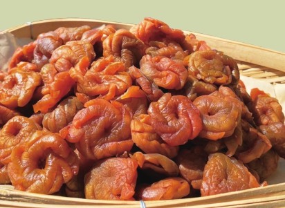 在我国民间的传统习俗中,人们经常将枣、花生、桂圆、栗子等撒放在新婚夫妇的床上,寓意“早生贵子”,所以枣也被赋予了喜结良缘、婚姻美好的寓意。枣外表红艳、内里香甜,既憧憬着爱情生活的红火,又代表着两情相悦的甜蜜。河北省沧州市有一道特色菜—“笑口常开”,就是以金丝小枣为主要原料制成的。其做法如下:先把枣核去掉,再把和着白糖的糯米、山药泥塞进去蒸熟,吃起来甜中微酸,那漾满味蕾的味道被形容为“纯洁的初恋”。