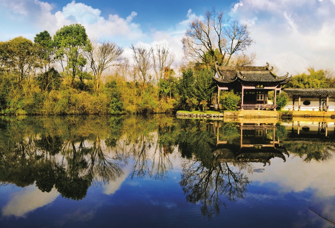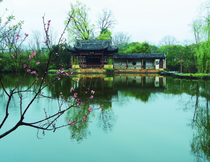 相传清嘉庆年间,唐模村人、徽商许以诚在苏浙皖赣一带经营36家典当铺,获利甚丰。其母想去杭州西湖游览,因年迈体弱不便成行,许以诚便出巨资雇人模拟杭州西湖风景,挖泥造湖,堆山造景,修筑亭台楼阁、水榭长桥,营造出三潭印月、湖心亭、白堤、玉带桥等胜景,恰似一处微缩的西子湖。