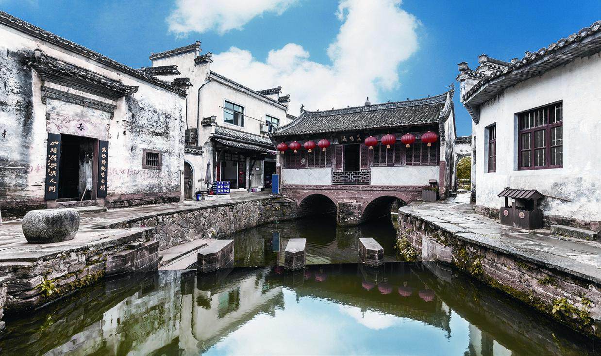 提到古村落,不少人首先想到的就是皖南,那里散落的徽州古村落如同一颗颗璀璨的明珠。唐模就是其中之一。唐模村位于安徽省黄山市徽州区潜口镇,距全国历史文化名城歙县仅十余千米。它钟灵毓秀,是一个集水口园林、徽派建筑、田园风光于一体的古村落,“堪称徽州古村落的典范”。从这里走出去的晚清翰林许承尧曾这样赞美家乡:“喜桃露春浓,荷云夏净,桂风秋馥,梅雪冬妍,地僻历俱忘,四序且凭花事告;看紫霞西耸,飞布东横,天马南驰,灵金北倚,山深人不觉,全村同在画中居。”