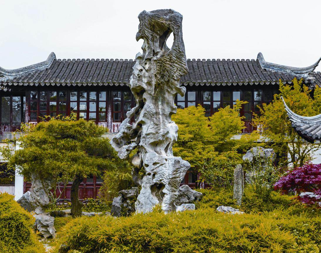 许多天然的碳酸钙岩石也是上好的建筑材料,比如汉白玉。汉白玉是一种白色的细粒大理石,化学成分是碳酸钙,质地虽硬但易雕琢,可镂雕成各种精美图案。北京天安门前的华表以及人民英雄纪念碑的碑身和四周栏杆都是用汉白玉砌成的。又如太湖石。太湖石以独特的造型和神韵成为我国园林景观中的奇葩,它和安徽的灵璧石、广东的英德石、南京的雨花石合称我国“四大名石”。太湖石其实是石灰石在水或酸性土壤极其缓慢而漫长的侵蚀下而形成的碳酸盐岩,其形状各异、姿态万千、通灵剔透,具有“瘦、皱、漏、透”之美。上海豫园的“玉玲珑”、苏州留园的“冠云峰”和原苏州织造蜀(现苏州第十中学)的“瑞云峰”,都是极具代表性的太湖石极品。