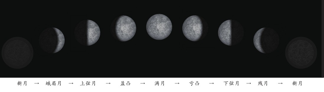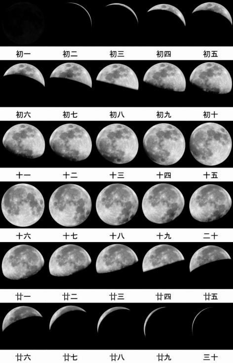 月相在一个农历月份中的形状变化可以分为以下阶段。