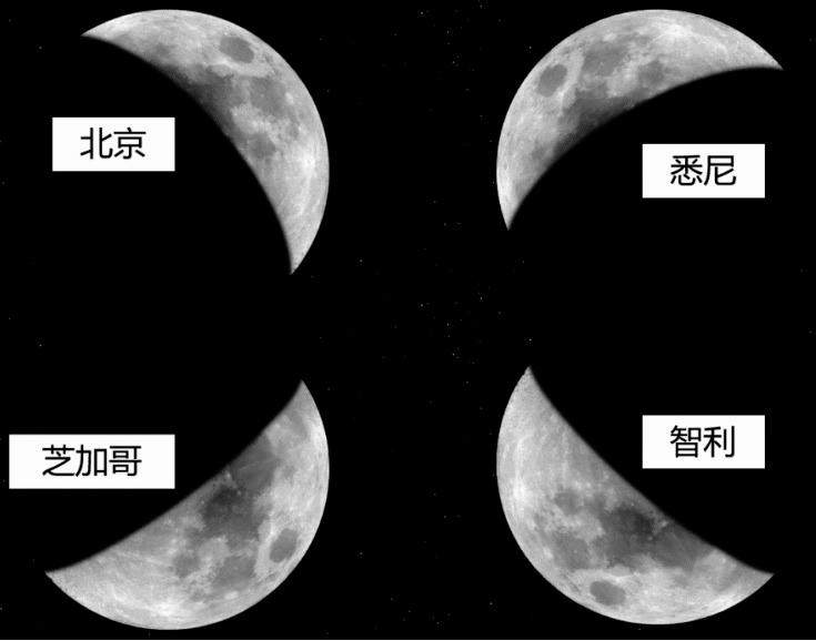 可以看出,同一天,在世界不同地区看到的月亮是不一样的,甚至连上下弦都无法准确判断,更别说判断日期了。那么,是否有一个方法可以让人们无论在哪里,看一眼月亮就能知道当日的农历日期呢?