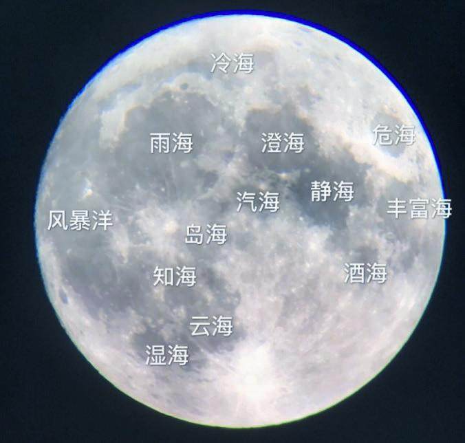 中国人早在公元前300年左右就注意到了月海。爱国诗人屈原在《天问》中写道:“夜光何德,死则又育?厥利维何,而顾菟在腹?”他对月亮的消失和再现感到疑惑,同时提到了月中的阴影,猜测它是否真的是一只兔子。诗中的“厥利”是指阴影,而月亮上的阴影就是月海。每个月海都有自己的名字、位置和特征。不同的日期会导致我们看到的月海不同,但在同一天,世界各地看到的月海是一样的。
