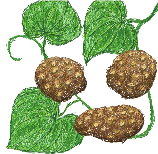 确实,这种被贾宝玉称为“香芋”的干果,并非我们以为的芋头,而是另有所指—一种名叫“黄独”的藤蔓植物上所结出来的珠芽。