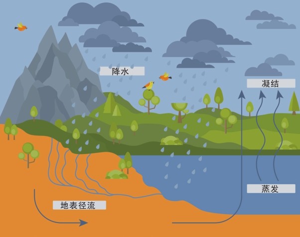 到了晚上,情况正好颠倒过来。夜间,覆盖在盆地上空的云层就像一床巨大的棉被,把大地“捂”得严严实实,近地面的空气由于散热较慢,气温通常较高;而云的上层因为辐射散热,温度下降很快。这样一来,上下云层间便形成了上冷下暖的明显温差,上层冷空气因为密度大而下沉,下层暖空气则因密度小而上升,由此在上下空气间产生了明显的对流,近地面水汽被带到高空,从而产生了降雨现象。