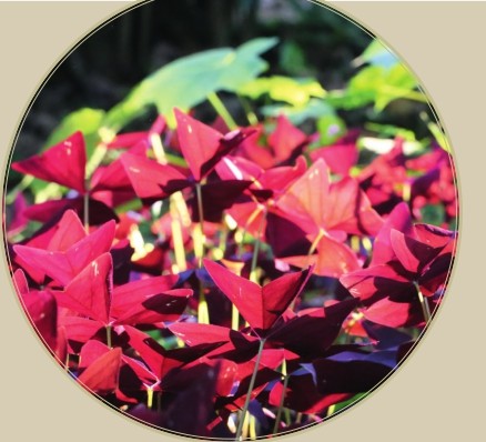 目前,在景观绿化中应用最多的要数关节酢浆草。关节酢浆草非常容易辨识,粉红色的伞形花序绽放于植株顶端,5片花瓣基部排列着玫红色的条纹,引导着蝴蝶、蜜蜂或飞蛾等到访者顺着条纹去探寻可口的蜜源。关节酢浆草的叶片也很特别,淡绿色的叶片像一颗颗爱心,形成完美的对称结构,植株上无数个叶片又组成一座座山丘的形状,最上面是盛放着的红色花朵。