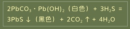 婆娑起舞的飞天场景令人如痴如醉,可美中不足的是,那些仙女的面庞和肌肤大都是灰黑色的。难道说,我们祖先的肌肤是灰黑色的吗?当然不是。原来,这些画面上的灰黑色物质是硫化铅(PbS);不过,当初涂上去的可不是硫化铅,而是一种有名的白色颜料—铅白,即碱式碳酸铅。这种物质具有很强的覆盖能力,所涂之处,可以说是白的刺眼;不过,由于敦煌壁画长期受到空气中微量硫化氢气体的腐蚀(动植物在死后腐烂时常会产生硫化氢气体),壁画的颜色逐渐由耀眼的白色变成了灰黑色,其化学反应为: