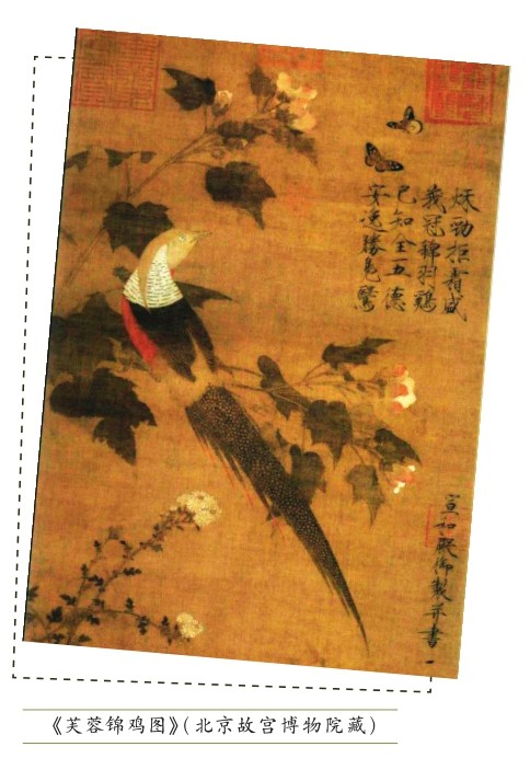 一幅传承了近900年的《芙蓉锦鸡图》,既让我们领略到了宋徽宗精湛的书法绘画技艺,也展现出了北宋工笔花鸟画的发展盛况,同时让我们了解到更多超出书画艺术领域的知识。日后在欣赏古代艺术作品时,我们不妨换一个角度和思路,也许会获得更多的意外惊喜。