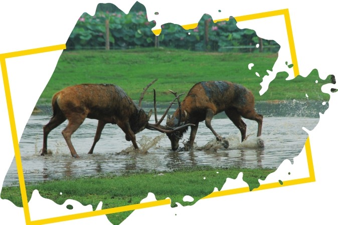 全球约有鹿科动物50种,大多是雄性具角,麋鹿也不例外。雄鹿的角每年都会脱落,然后再生新角。新生鹿角为茸质嫩角,雄鹿十分在意它们,从不用娇嫩的茸角相抵撞。若发生争斗,它们会选择后腿站立,用前蹄拍击对方。三个月后,茸质鹿角长为骨质鹿角,成了雄鹿披坚执锐的武器。
