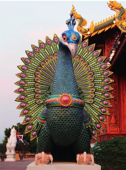 公元前327年,高歌猛进的马其顿军团已向东推进至印度西北部地区。扎营于海达斯佩斯河畔之后,军团首领开始提审新近俘获的当地土著。有一名皮肤黝黑的低种姓少年很快引起人们的关注,因为他面对询问时不仅语调高昂,还不时斥责敌人率军入侵自己的家园。嘈杂声很快惊动了东征的大统帅—亚历山大大帝,但少年依旧镇定自若。他吹响一声口哨,就见一大群蓝孔雀出现在河对岸的空地上,它们三三两两,或优雅地翩翩起舞,或展开华丽的尾屏望向对岸……尽管在希腊时就见过这种来自东方的神奇大鸟,但面对如此多数量的孔雀,亚历山大大帝还是感到十分震惊,他随即下令不准任何人惊扰这些孔雀。