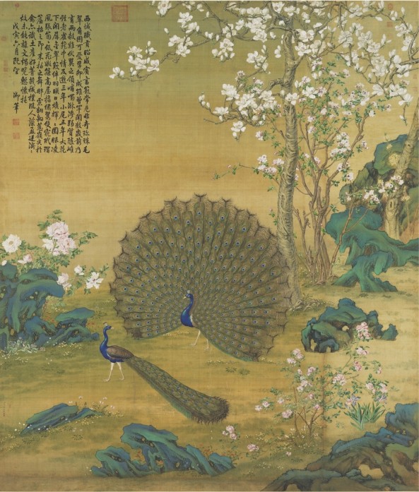 或因为数量少,孔雀的文学形象在古代中国算不上饱满。尽管三国时期的杨修、钟会等人曾为孔雀作赋,唐代杜甫、白居易、韩愈、李商隐等人也都留下过孔雀主题的诗作,但大部分中国人能吟诵出与孔雀相关的诗句大概只有一句“孔雀东南飞,五里一徘徊”。之所以“孔雀东南飞”,可能与东汉末年的孔雀主要来自东南有关。由于距离更近,且绿孔雀更雍容华贵,色彩也更丰富艳丽,所以汉代以后中国人看到的绿孔雀更多。根据笔者对明代黄省曾《西洋朝贡典录》一书的统计,向明朝进贡孔雀的国家共有六个,都是东南亚国家。难怪清末的《清稗类钞》总结说:“孔雀产热带地,吾国园囿有蓄,多由印度群岛及暹罗输入,故畏寒,不易畜也。”