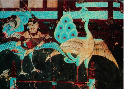 距今3000多年前,印度蓝孔雀就已经向西旅行到了今中东和地中海地区,出现在古埃及的宫廷中和古罗马的墓室壁画上,闪烁于古希腊神话以及古犹太经典之中。1世纪中后期,早期基督追随者继承了古希腊和古罗马人对孔雀的喜欢,并赋予孔雀永生的神性,从此抬升了孔雀在基督教文化中的地位。在东方,汉代以前有关“孔雀西来”的历史记录有《艺文类聚》引《周书》曰:“成王时,西方人献孔雀。”梳理古代文献中对孔雀的记载,我们可以发现:秦汉之际,随着南方国土的开发,来自南方的绿孔雀不断旅行至中原地区。隋唐时期,中国孔雀以赠赐或贸易的方式向东旅行到朝鲜半岛和日本,丰富了东北亚地区的孔雀文化。