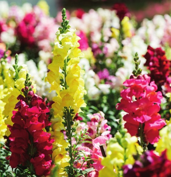 金鱼草原产于地中海地区。早在古罗MVPZlD3JR54Pcv3+1UnwfA==马时代,金鱼草即已被驯化为庭院观赏植物。其分布区域很广,南至摩洛哥和葡萄牙,北至法国,东至土耳其和叙利亚。我国把它作为观赏花卉引进栽培。金鱼草的花朵外形奇特,不仅开花多、花色多,而且花期长,非常适合观赏。每逢春末夏初,栽种在花坛里的金鱼草就会长出一束束靓丽的花朵,它们像一条条金鱼尾翼被串在了花茎上。这些“金鱼尾翼”颜色多样,从深紫到玫红,从淡粉到纯白,其间夹杂着金黄色的花束,姹紫嫣红,靓丽了整个花坛。金鱼草也是优良的鲜切花用材,用它制作花篮或插瓶,不仅能够烘托出欢乐、幸福的气氛,而且不同颜色的花朵还有不同的美好寓意。