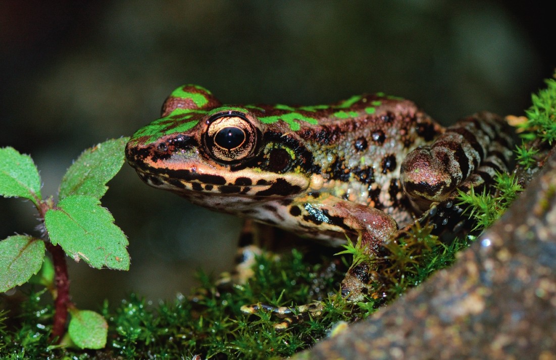 属于无尾目蛙科的安龙臭蛙、龙胜臭蛙是中国特有物种,前者生活于贵州龙头山地区,后者生活于贵州和广西龙胜一带。它们主要栖息于海拔l000~1500米的林区山溪内,溪旁一般植被繁茂,石头及岩壁上着生有苔藓植物。白天,它们常蹲于长有苔藓的岩石上,体色与苔藓很相近,受惊扰后会立即跳入水中逃避。