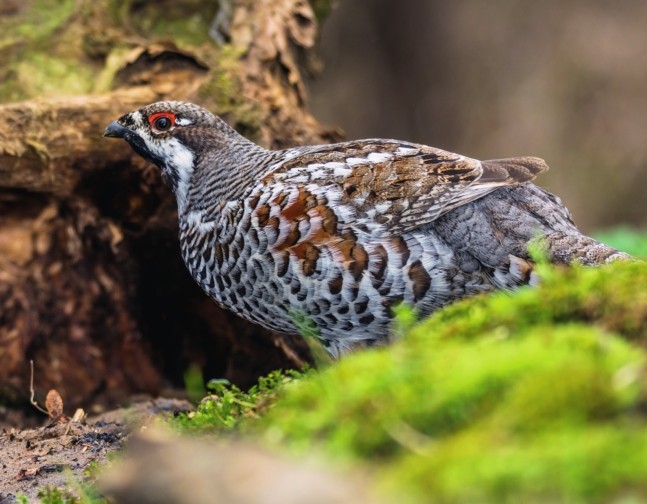 花尾榛鸡在满语中被叫作“斐耶楞古”,后来取其谐音,称为“飞龙”。花尾榛鸡是鸡形目松鸡科榛鸡属的中型鸟类。它们的体羽主要为棕灰色,上面有暗栗色的横斑;下体为暗棕褐色而杂以白色,脚为红褐色。雄鸟的头上长有短的羽冠,繁殖期的雄鸟,眼上裸露的皮肤会变为红色,显得十分美丽。花尾榛鸡是典型的森林鸟类,主要以植物的嫩枝、嫩芽、果实和种子等为食,秋冬和早春时节,当地面被雪覆盖时,它们几乎完全在树上觅食。与此相适应,它们的爪上具有栉状缘,利于抓住冰滑的树枝。它们主要通过叫声标志领域并相互联系;两只雄鸟接近时,彼此会发出低沉的警告声。求偶炫耀时,雄鸟和雌鸟在一起追逐、起舞。