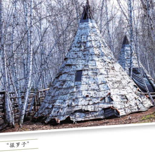 别具一格的简易建筑“撮罗子”是鄂温克使鹿部落的传统住宅。这种用小杆和桦树皮做成的房屋,高3米左右,底部直径约4米,屋架呈圆锥形,在外面围上桦树皮或兽皮即可居住,屋顶留出通烟口。“撮罗子”易搭易拆易搬,盖上防寒保温的兽皮就是过冬居所。