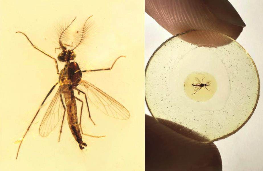 近日,科学家在距今约1.3亿年的黎巴嫩琥珀中发现了两枚远古雄性蚊子化石。这是目前已知最古老的蚊子化石。研究人员借助激光共聚焦显微镜、荧光显微镜等先进仪器发现,与现代雄蚊多吸食花露、口器退化不同,1.3亿年前的雄性蚊子化石中保存了明显的刺吸式口器。这些刺吸式口器有尖锐的三角状下颚,下颚上有锋利的小齿。研究团队根据这些结构判断,1.3亿年前雄蚊子也会吸血。