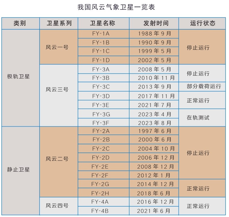 50多年来,我国风云气象卫星事业实现了从无到有、从跟跑到并跑再到部分领跑的跨越。半个世纪前,周恩来总理高瞻远瞩地提出“要搞我们自己的气象卫星”,并于1970年亲自批准研制气象卫星的任务。1988年9月7日,我国用长征四号运载火箭成功发射风云一号A极轨气象卫星(FY-1A),获取了清晰的遥感图像,从此告别了完全依赖外国气象卫星数据的历史。2018年6月5日,风云二号系列“收官星”FY-2H成功发射,成为服务“一带一路”建设的新品牌,开启了风云卫星服务国际社会的新纪元。2024年,“风云家族”会按计划持续“上新”—FY-4C、FY-3H将翱翔太空,提供更多更优的观测服务。