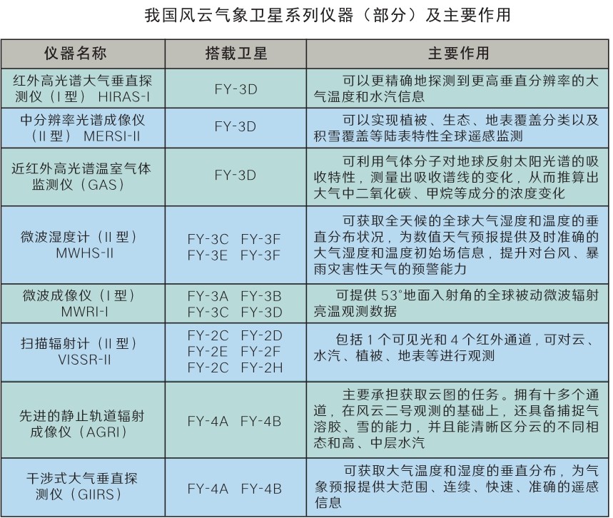 总之,“风云家族”成员“法眼”众多、通道浩繁,可以对地球大气系统的温度、湿度和云雨演变等气象要素进行立体监测,为天气预报、气候预测、灾害监测和环境监测等气象业务的开展提供有力支撑。